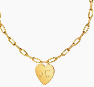 Alpha Omicron Pi Heart Necklace