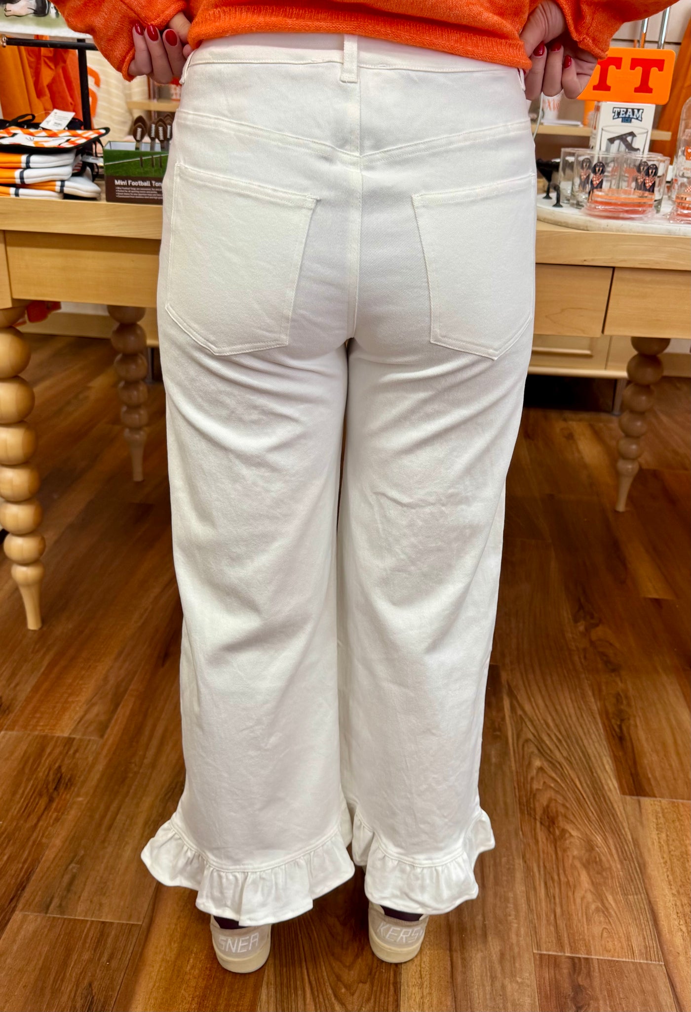 Off White Denim Ankle Cut Jeans w/ Ruffles